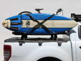 Get your board up and off the top of the Front Runner Slimline II Rack and free up valuable storage space for a Roof Top Tent or other gear. Designed to keep your boards safe and secure during transport on the world’s toughest roads. Features variable length adjustment, padded board protection and 2 carrying positions.