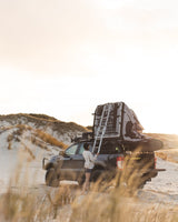 Forget blowing up mattresses, and putting up poles. Introducing The Crow’s Nest Extended, Feldon Shelter’s 2-Person Rooftop Tent. The Crow’s Nest Extended tent is up in less time than it takes to boil the billy. A simple pull of the ladder unfolds the ready-to-use tent all by itself. There's a built in queen mattress that tucks your sleeping bag and pillows away inside, saving you valuable car space. An effortless setup for carefree adventures.