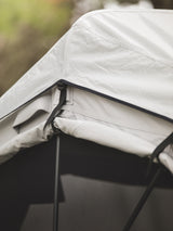 Felton Shelter’s uniquely curved roof prevents annoying water pooling and those unsuspecting roof showers. These curves mean smoother aerodynamics so even the strongest of winds are no match. We’ve given extra attention to keep your nest cosy and dry by specially waterproof treating our canvas, using waxed stitching and taping all seams.