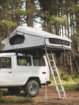 The most premium roof-top tent available is chocked full of carefully thought out features. Ample storage is taken care of with external shoe pockets, a multi purpose cargo net, and handy internal storage pockets. A retractable light-weight ladder, quick release hand attachments and plenty of ventilation take the pain out of camping to create effortless adventures.