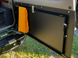 Suitable for Nissan GU Safari & Patrols. Bolting into your door utilising existing holes with Riv-Nuts, this table DOES NOT require and cutting of the door.