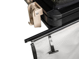 Simply slide the supplied shoe pocket mounting track into any of the the T-Tracks on the side of your Hawk's Nest V1 or V2 Rooftop Tents and tighten down in the desired position. From here you can slip on your shoe pocket when your ready for camp, and slide off once you are done (no need to remove the mounting track!).