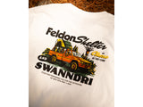 The 'Out There' T-Shirt is a celebration of two Kiwi classics, Swanndri & Feldon Shelter. This 100% Cotton Tee features the dream camp setup that hopefully awaits you at the end of a long stint behind the wheel.