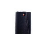 The Pan Snug is dark and made from a full grain 'raw-look' oiled leather. The oil is how we darken the leather, no stains or varnish are used. The oil makes it flexible and water resistant and over time it will get a beautiful dark, distressed leather finish.