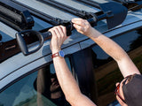 • Installs in the T-slots of the Slimsport Rack and can be inverted to allow for standard or lower mount depending on roof clearance.