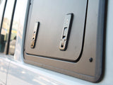 Includes 2 locking latches. Sealed with the same durable, weather resistant powder coating as the Front Runner Roof Rack. The Toyota Land Cruiser 70 can be brought back to stock within minutes by removing and replacing with standard window. Drilling required for fitment.