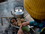 Laser cut 3CR12 stainless steel grill on aluminium legs. Grill and griddle sections for campfire cooking options. Hooks over a spare wheel (secure with Spare Wheel Step, or generic 25mm ratchet strap - not included).