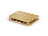 - Features a strong, lightweight bamboo surface and sturdy aluminium legs